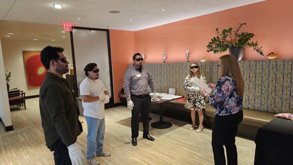 The emotional impact was immediate. One director of fitness told Lizett, “Now I know how to work with people who have a cognitive impairment.” Another participant paused after removing the gear, overwhelmed by how disorienting simple actions had felt. For him, the experience nearly brought him to tears.