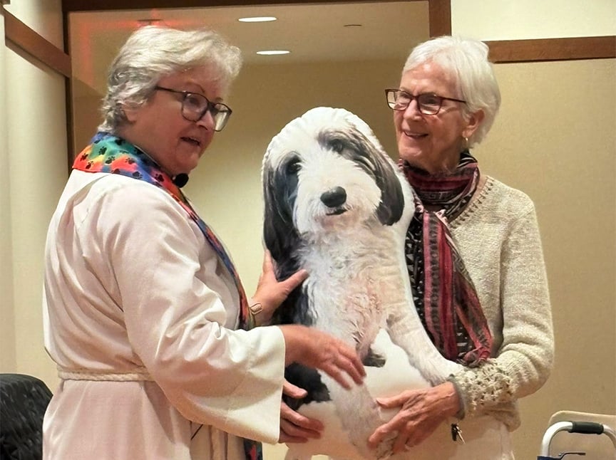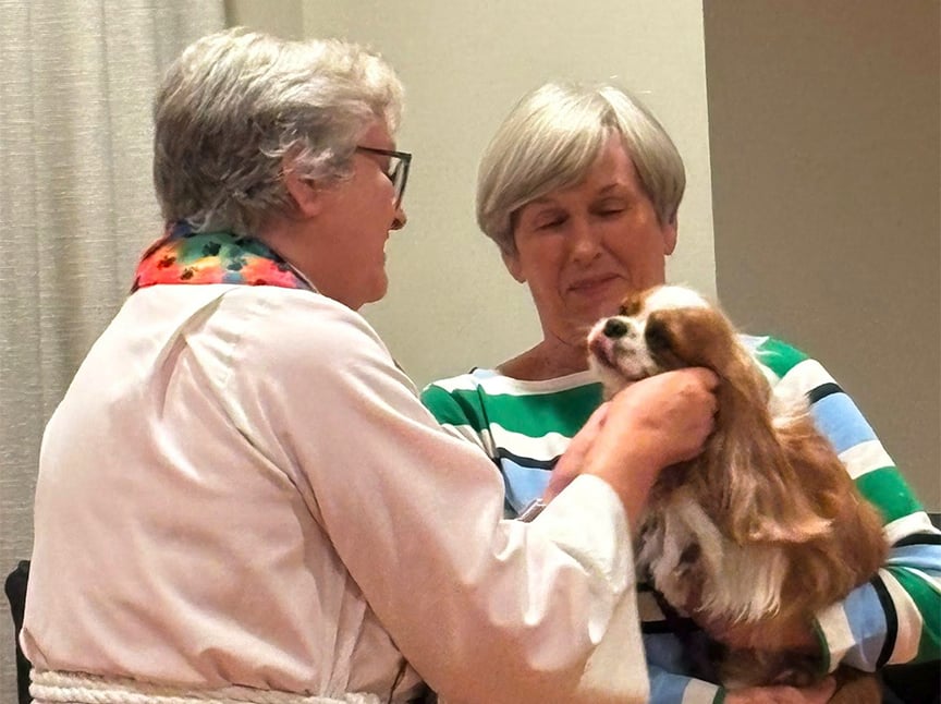 Chaplain Liz offered a “Blessing of the Animals” for the beloved pets of MonteCedro. Cats, dogs, and photos of furry companions were all given a special blessing filled with love.